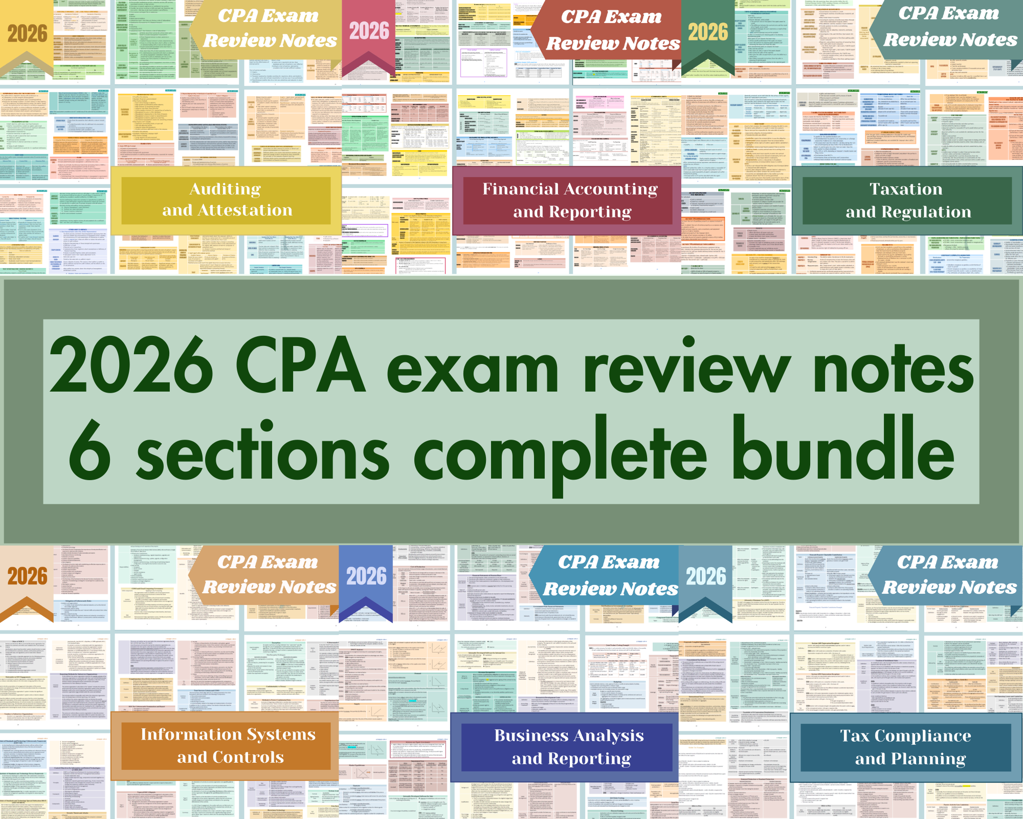CPA Exam Review Notes | 6 SECTIONS COMPLETE BUNDLE | 216 pages | DIGITAL DOWNLOAD | 2026 Edition