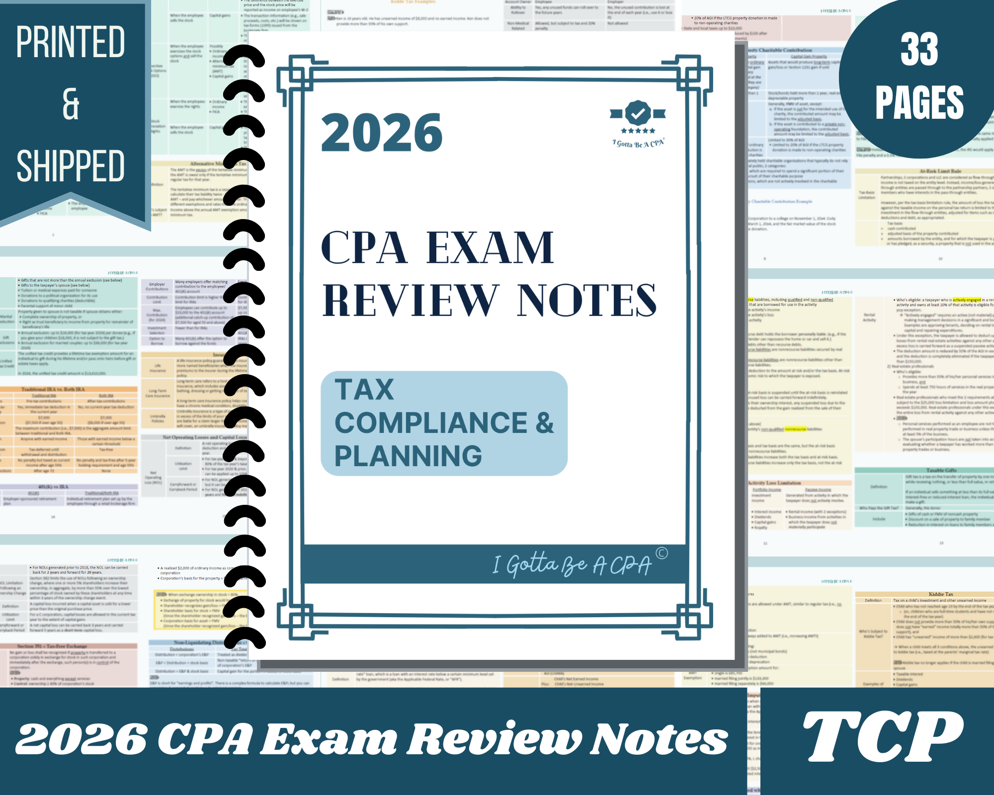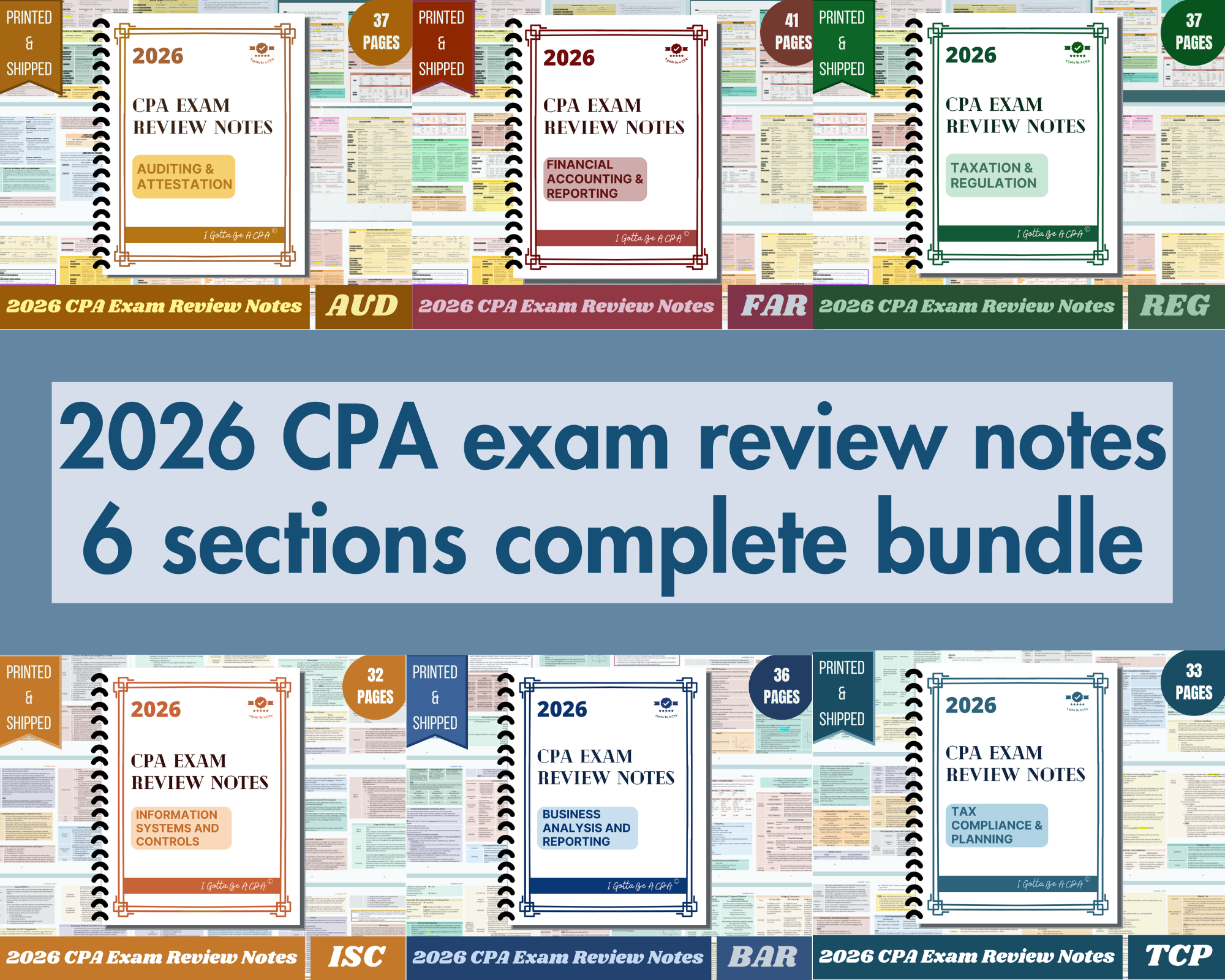 2026 CPA Exam Review Notes | 6 SECTIONS COMPLETE BUNDLE | 216 pages | PRINTED & SHIPPED | 2026 Edition