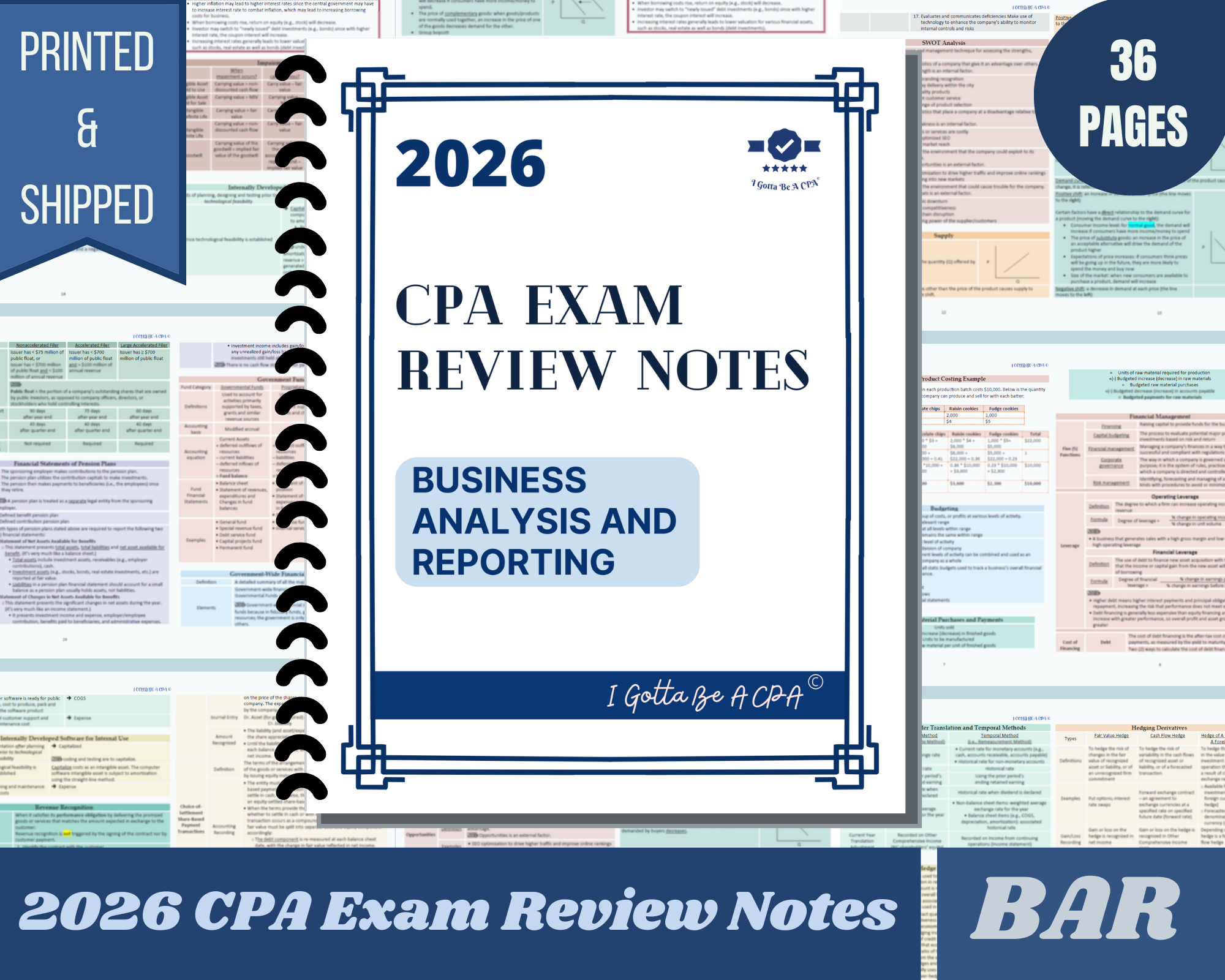 CPA Exam Review Notes 2026 | BUSINESS ANALYSIS AND REPORTING | 36 pages | PRINTED & SHIPPED | 2026 Edition
