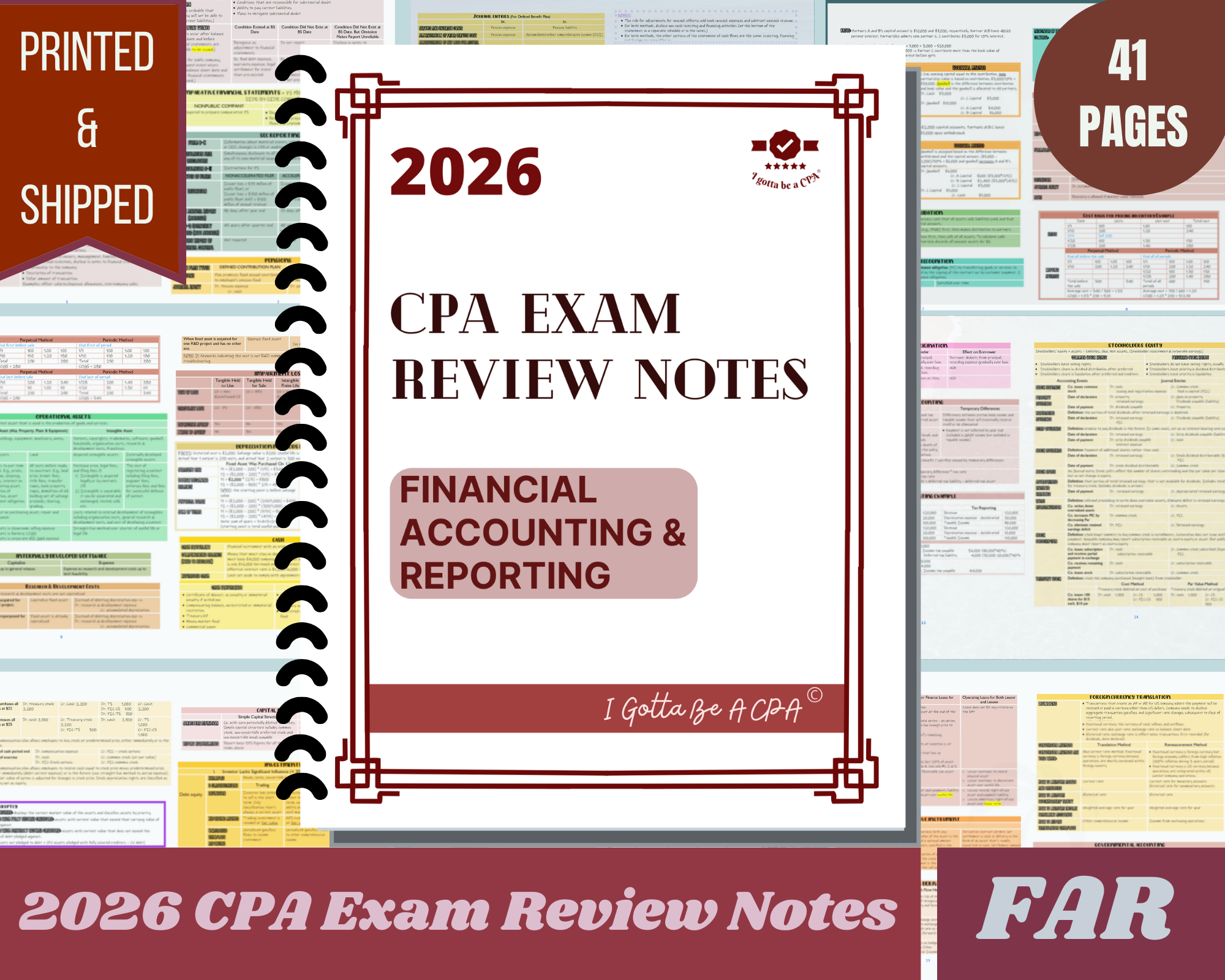 CPA Exam Review Notes 2026 | FINANCIAL ACCOUNTING AND REPORTING | FAR | 41 pages | PRINTED & SHIPPED | 2026 Edition